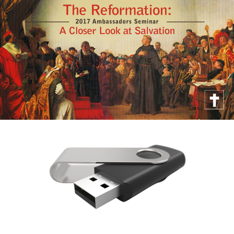 A USB stick that contains HD Video files of the 2017 Ambassadors Seminar on The Reformation.