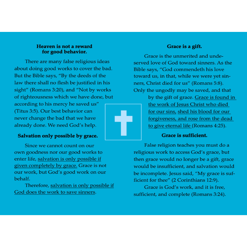 This hand size tract is great for going door-to-door, fairs, booths, or to start a conversation with someone about the gospel or the Bible rightly divided. It is printed on brightly colored paper so that they get noticed from a distance. Colors may vary. Text of the tract is found in the download link below.